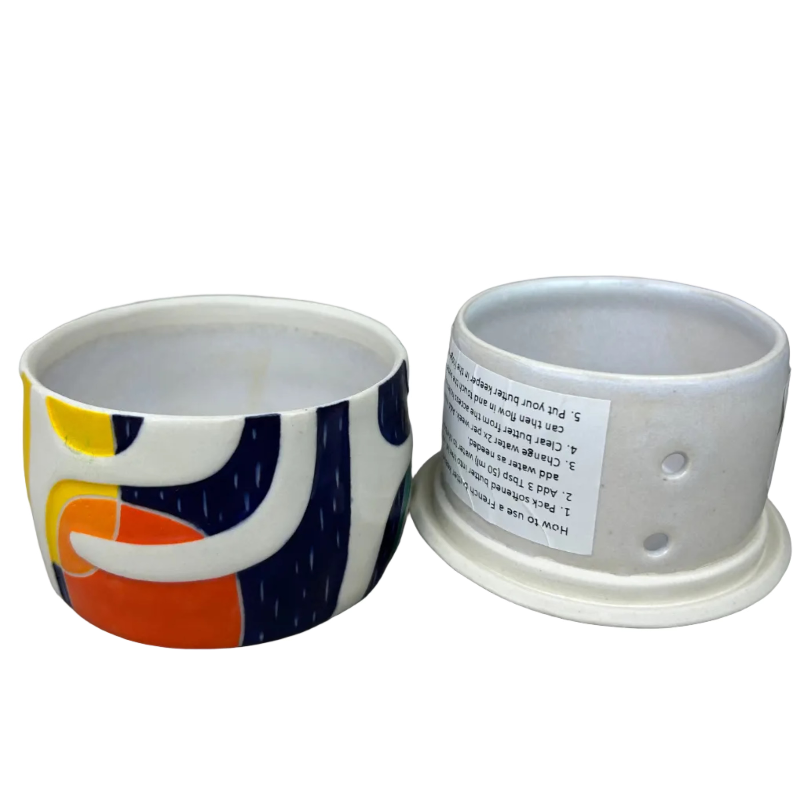 French butter keeper with one-of-a-kind hand painted embossed design.
