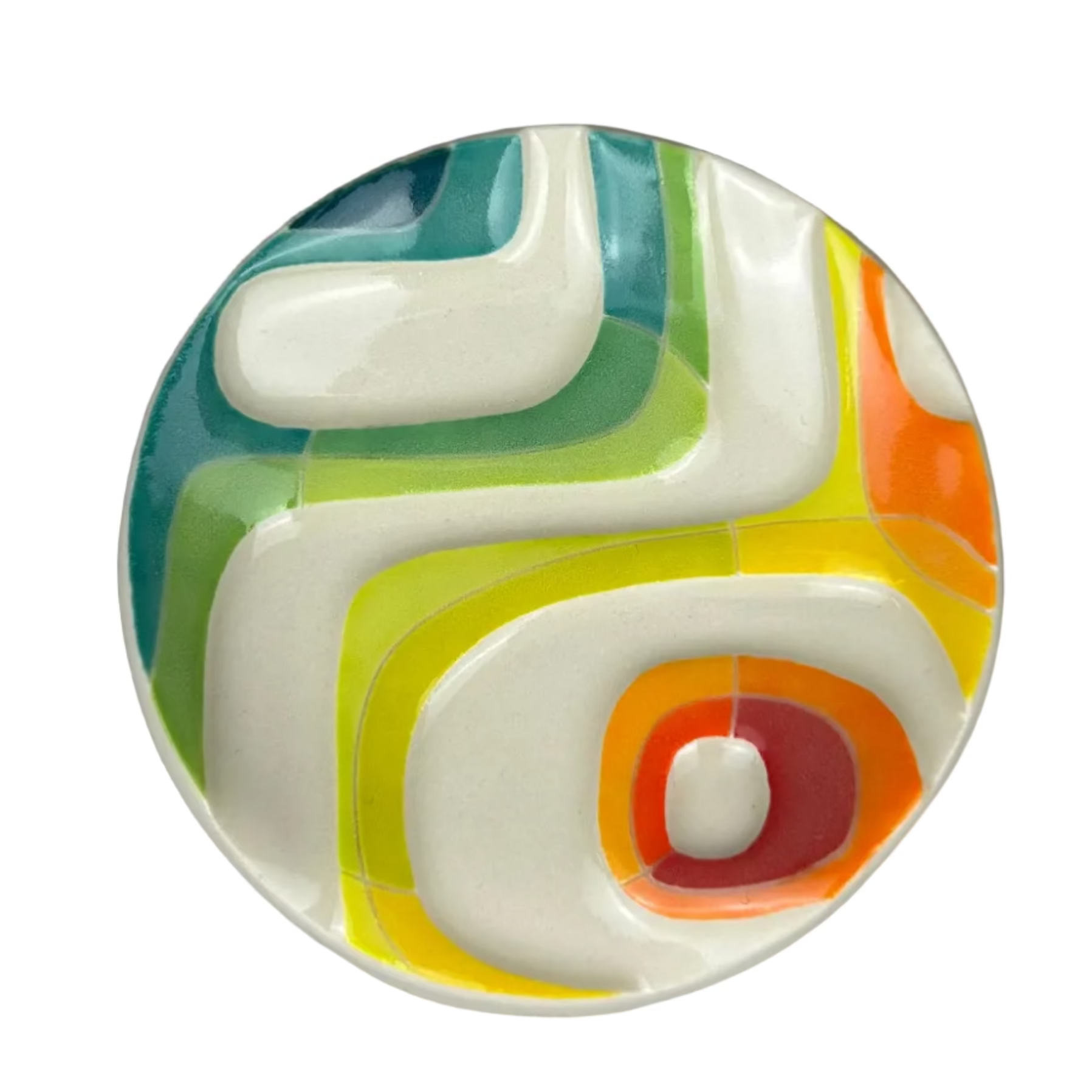 Handmade, handpainted, embossed porcelain spoonrest to add a bold pop of color to your kitchen. It's low profile with a grounded foot so it's not going anywhere amist the whirlwind of your cooking marathons.