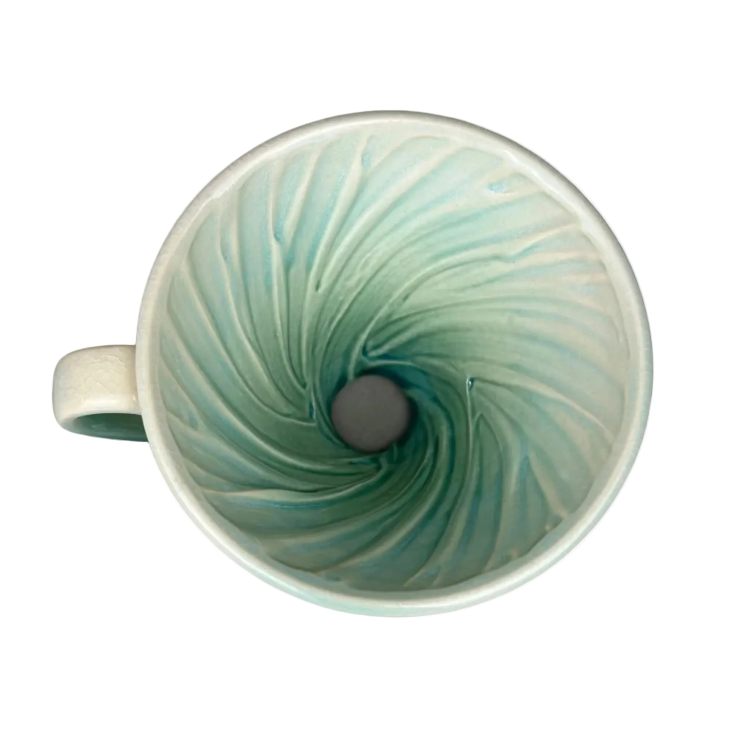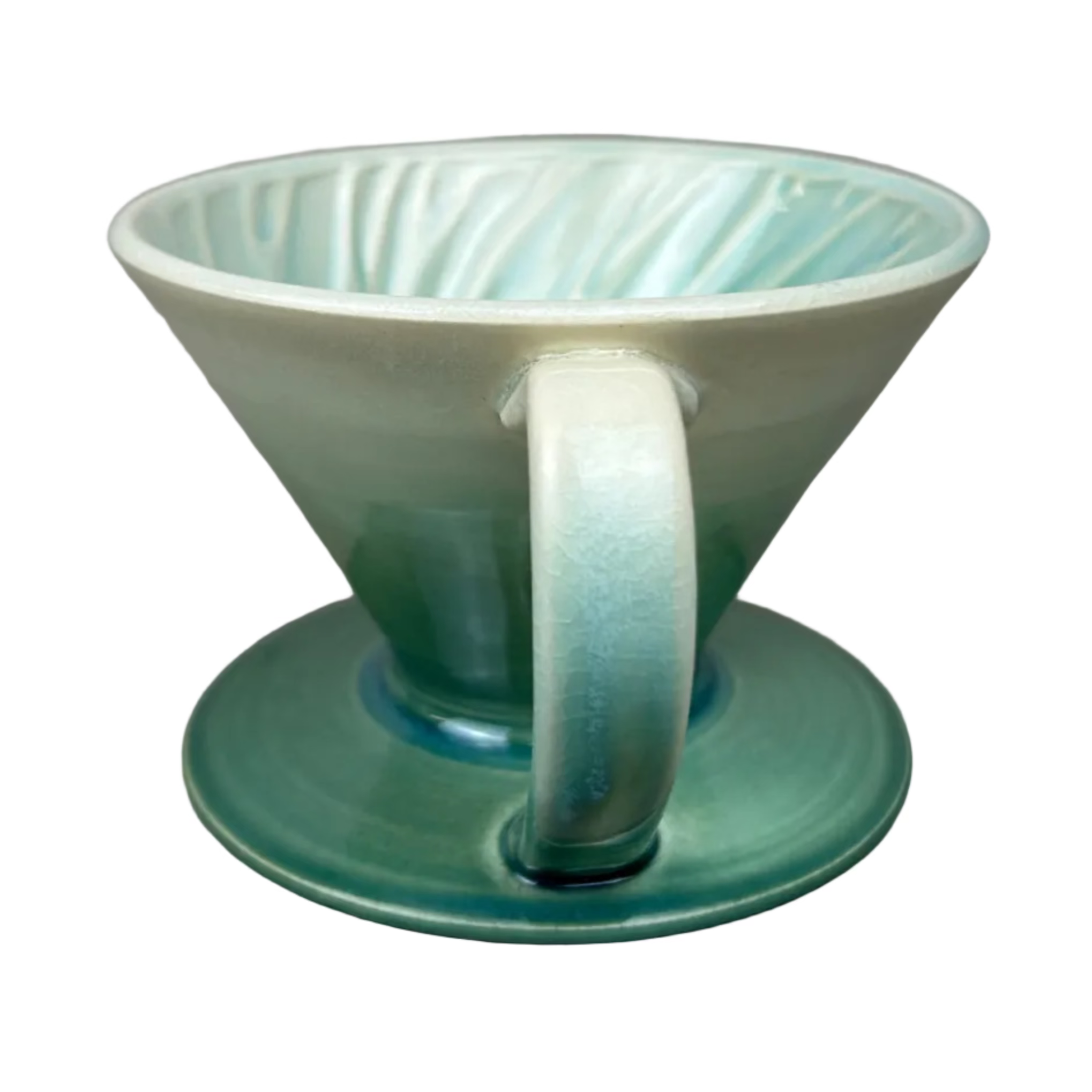 These handmade coffee pourovers offer a truly unique experience. Key features include a trimmed foot ring that helps hold the pourover securely on your cup, integrated handle for easy use even once hot, and unique interior texture for a truly one of a kind experience. These take a v60 style (conical) paper filter with most working best with a #2 size though a #1 still works fine.