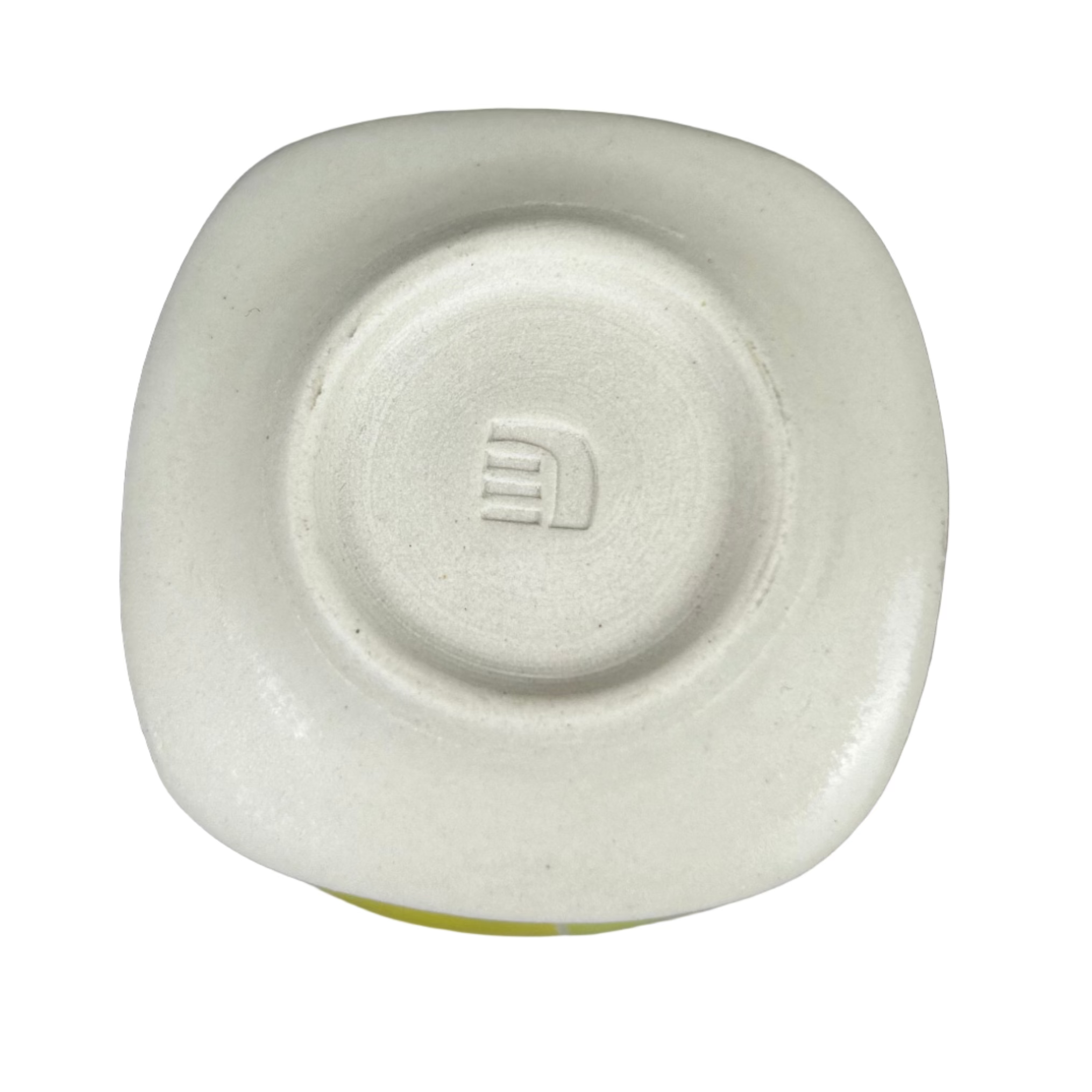 This unique handmade porcelain sipper is one of a kind. The embossed relief design gives this cup a very tactile experience. Great for texture lovers! The high-footed, press-molded bottom lifts the cup off the table, and creates a slight ledge at the meeting of the cup walls. The outside surface is mindfully handpainted with underglazes in an abstract, graphic composition reminicent of mid-century styling, then detailed with sgraffito carving. Satin clear glaze completes the final outer finish. Floating white glossy glaze lines the inside, giving it a durable, foodsafe and long-lasting finish. This beautiful cup makes a wonderful gift for a birthday, Christmas or any special occasion. Great for color and texture lovers.