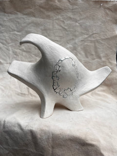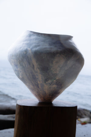 Each vessel is handmade through an experimental, layered process, often incorporating unconventional materials. Visitors are invited to experience her evolving studio in the gallery, and witness how she transforms raw materials into contemplative forms that feel both ancient and contemporary.