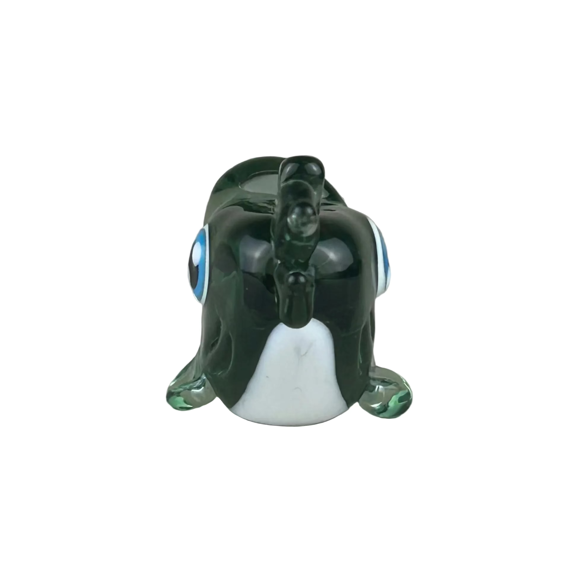 Sculpted in transparent steel grey with a white tum, this cutie features dorsal and pectoral fins, a sharky tail, gill slits and six pointy teeth beneath an adorable snub nose. With our signature blue eyes.