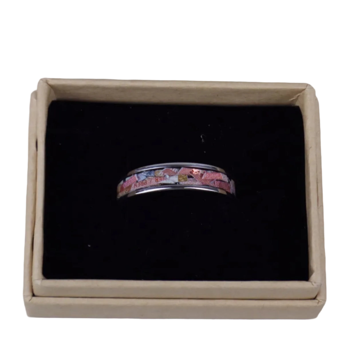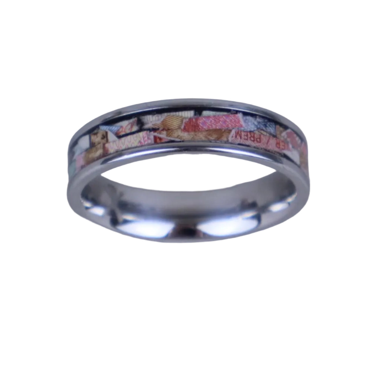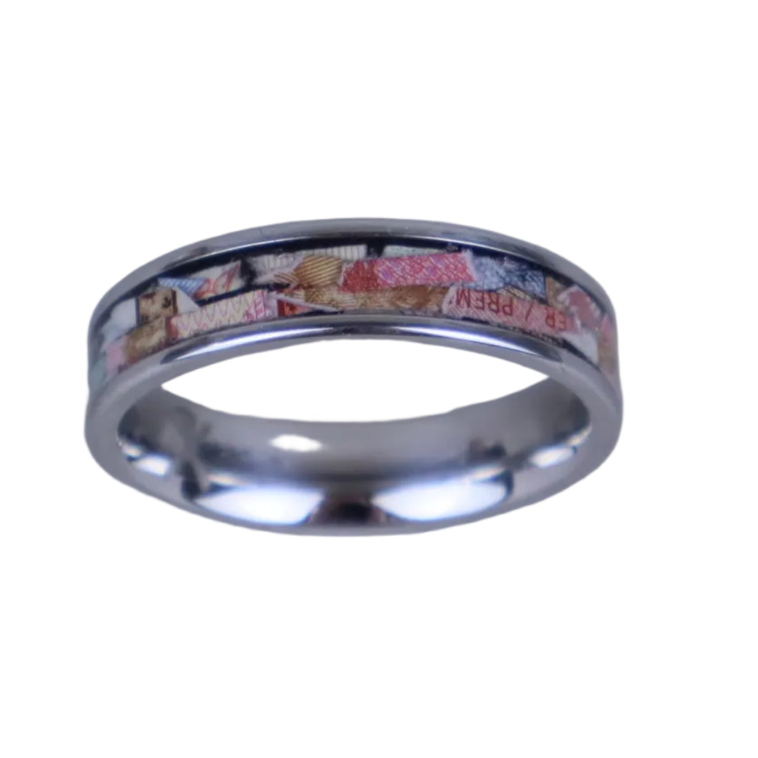 Handmade from shredded Canadian cash sourced from the Royal Canadian Mint, each ring is one‑of‑a‑kind with unique text and bill fragments ranging from $5 to $100. Wear it and never be left standing without cash on hand again — the ultimate conversation piece